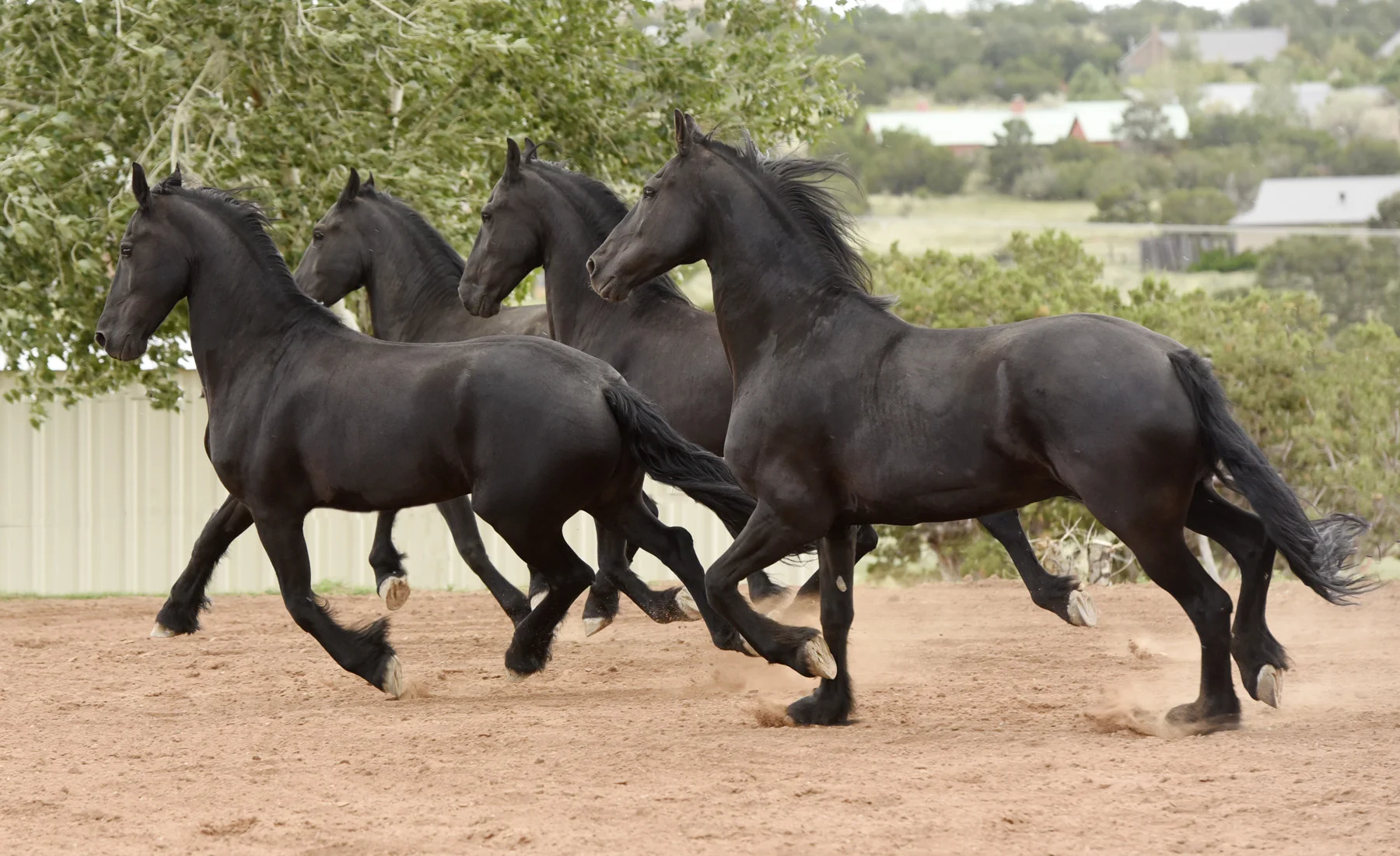 Photo feature: Proud Friesians Prins, Hannes, Gehrlof, and Willem owned by Betsy S. and Tim N. have lived at Trinity for more than 5 years. Photo Credit: Tony Stromberg